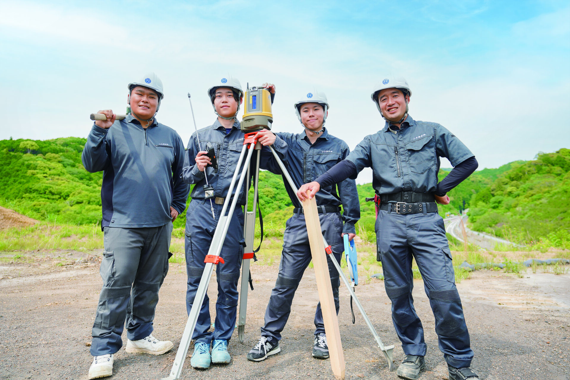 現場監督見習いとして測量、現場の段取り、工程管理などを行います。