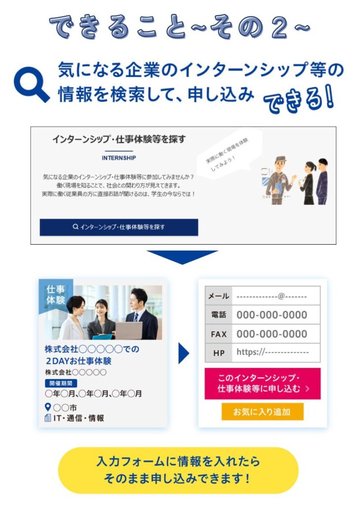 TOPページの「インターンシップ・仕事体験を探す」で