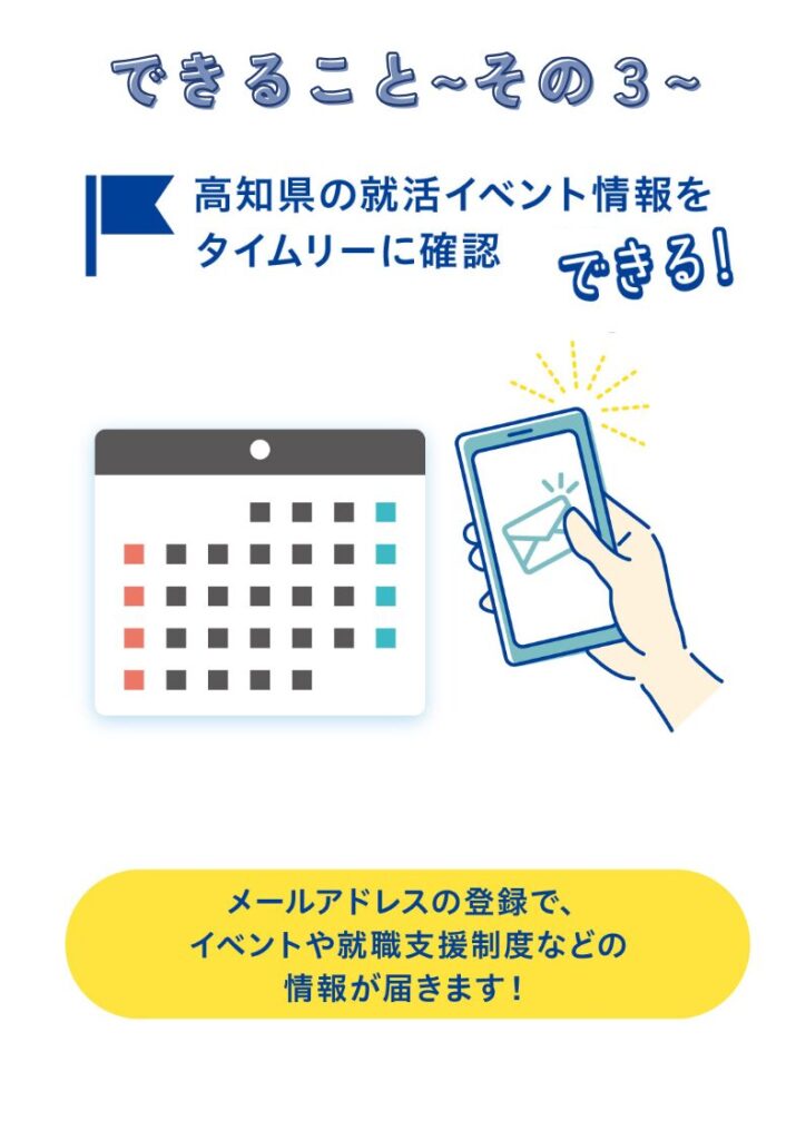 イベントや最新の働く情報など、高知の最新情報が届きます。