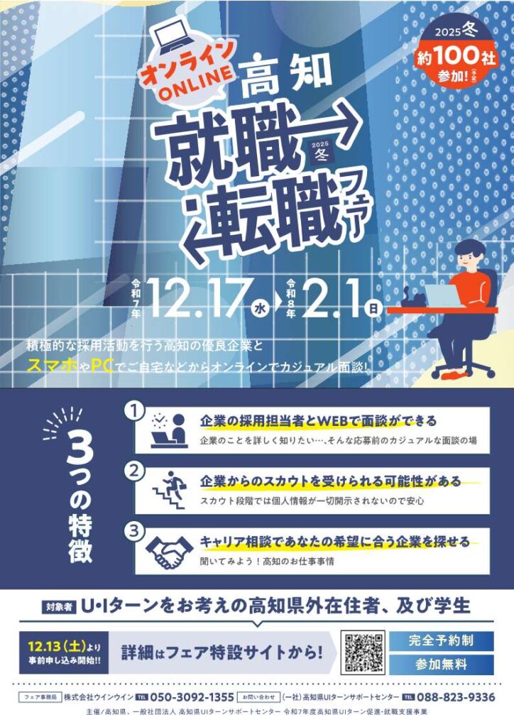 【12/17(水)〜2/1(日)オンライン開催】高知就職・転職フェア2025冬のご案内