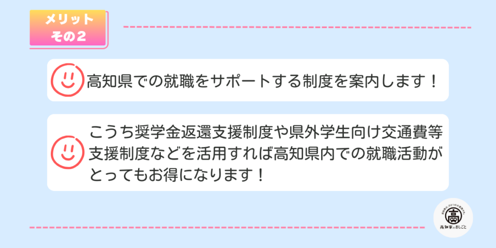 そうした高知で就職活動をするためのお得な情報もメールでタイムリーに配信しています。