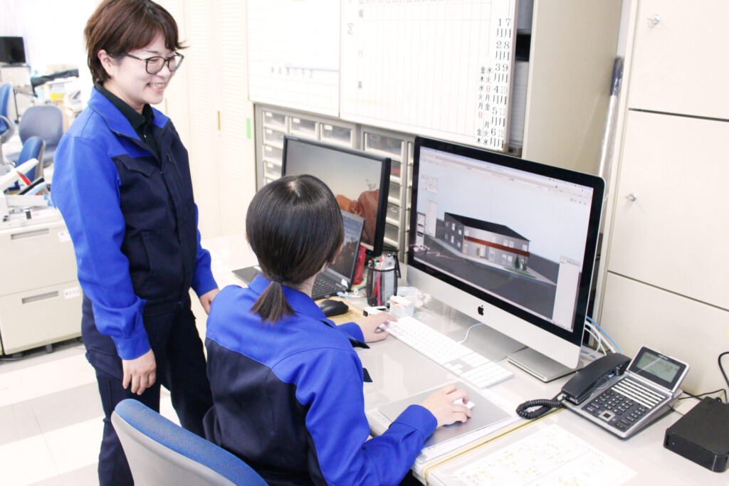 今回は入社1年目の建築部・恒石さんと専務の宮﨑さん、総務部の山中さんにお話を伺いました